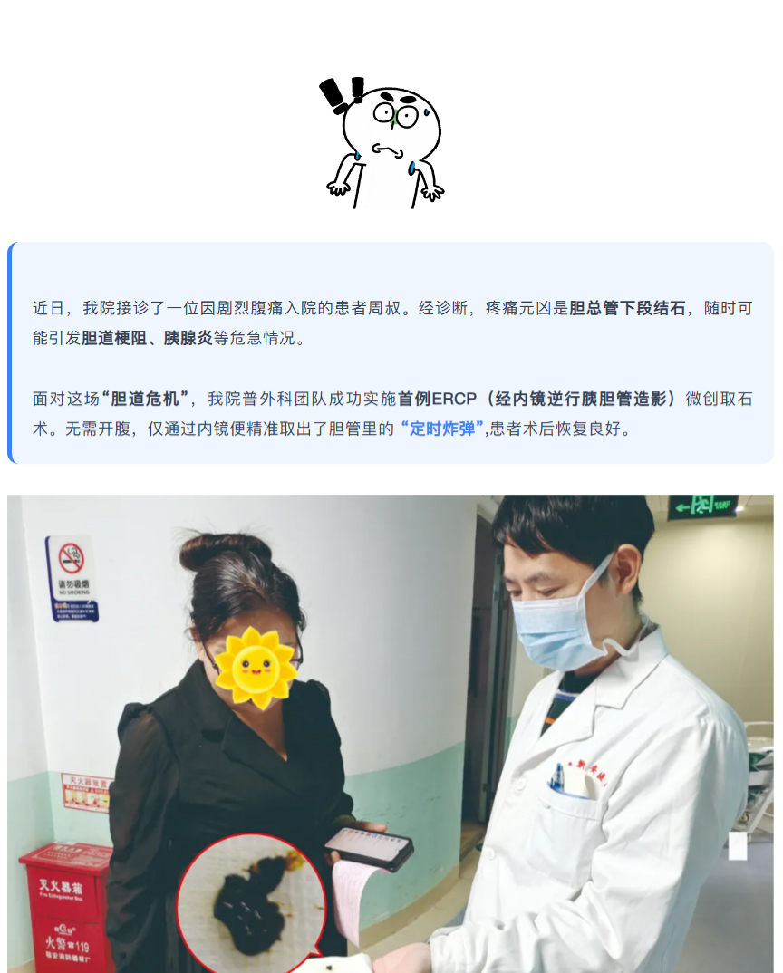 【技术突破】急性腹痛难忍?我院首例ERCP微创术精准“取石”,不开刀解决胆道危机
