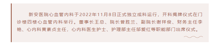 喜讯丨新安医院心血管内科正式开科!