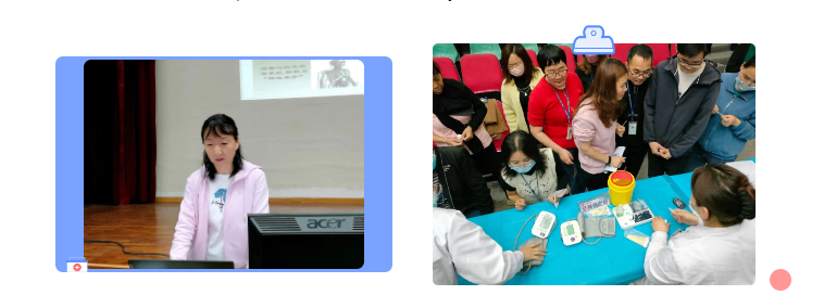 3月28日,由心血管内科主任黄素贞主任医师带队,走进东莞明冠电子有限公司,对职工进行高血压的防治健康科普讲座,现场提供测量血压血糖服务。