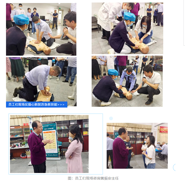 3月25日,由重症医学科(ICU)主任黄振安副主任医师带队,走进东莞世昌五金制品厂有限公司,对职工进行急救技能培训、心肺复苏现场手把手教学。