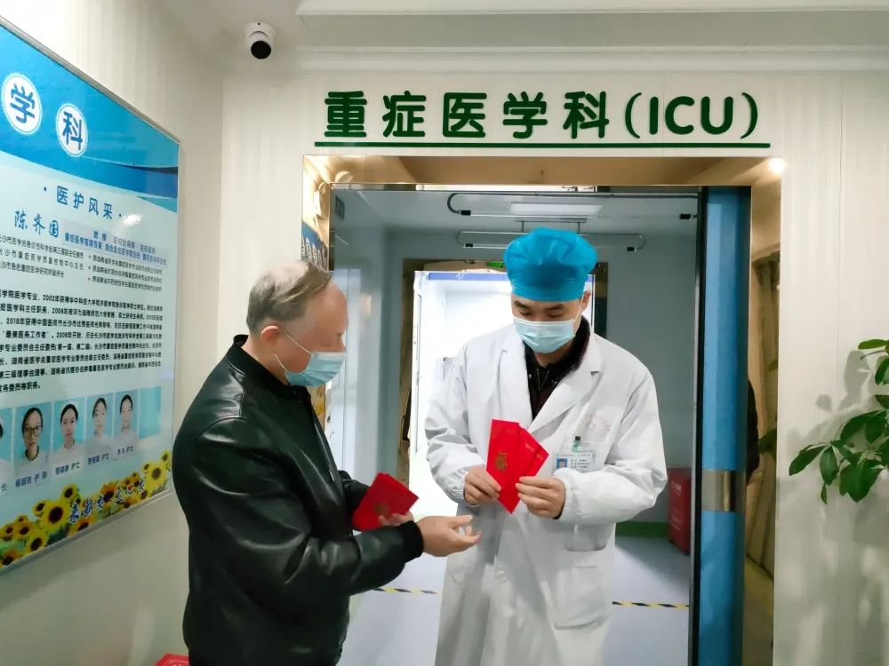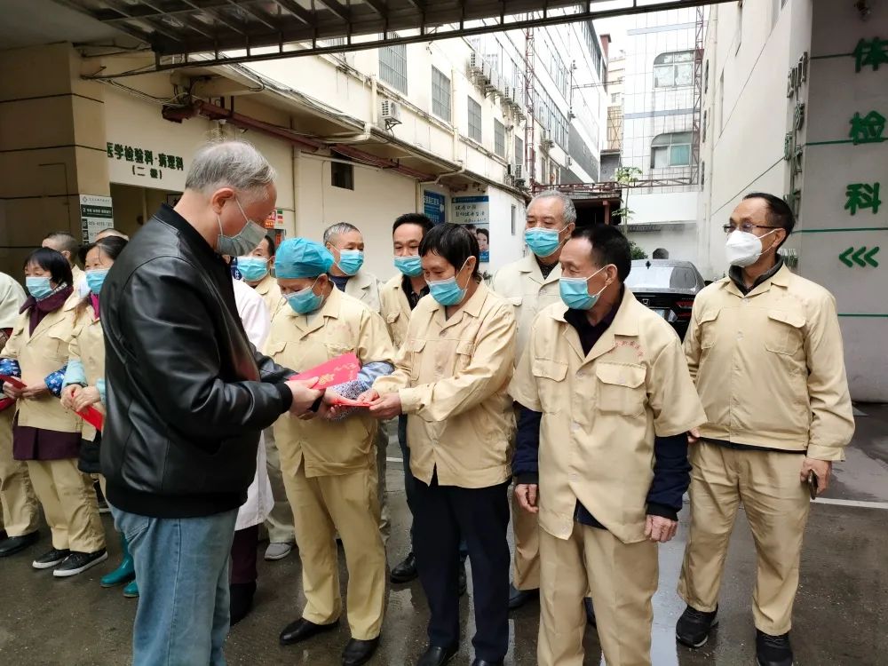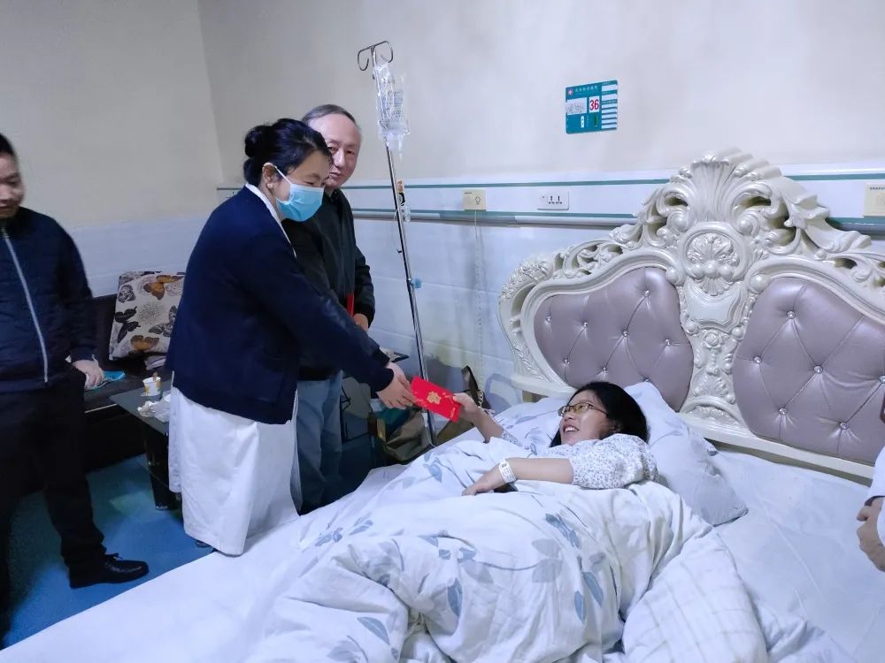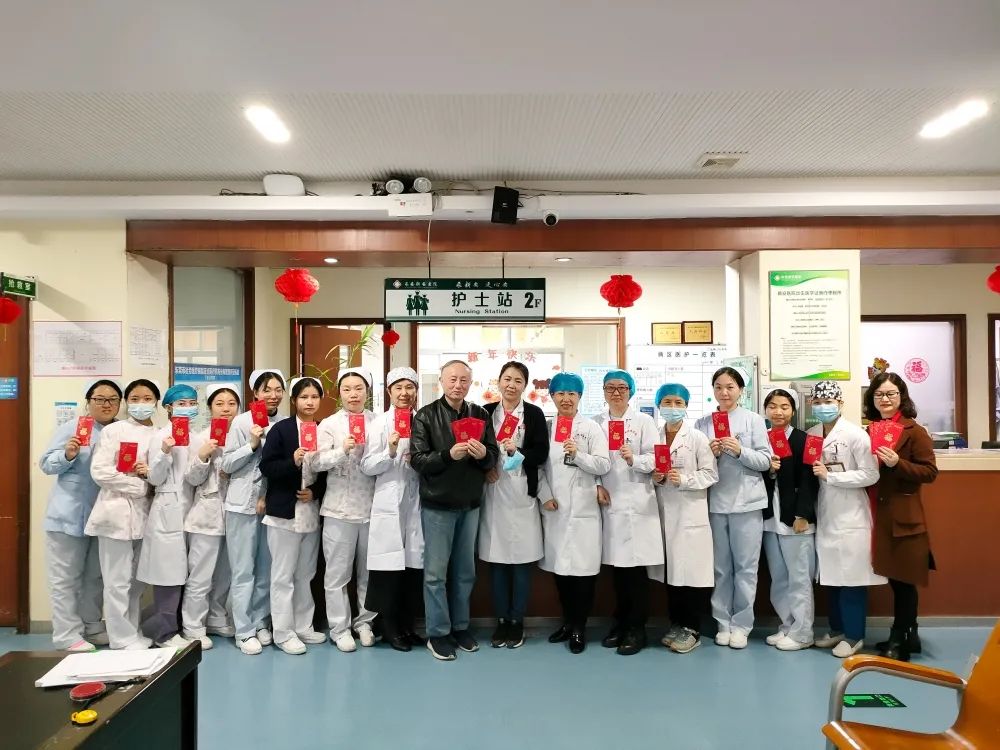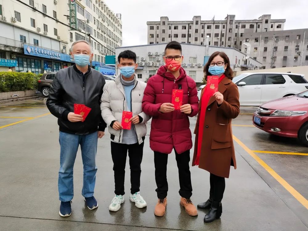 2022年2月1日大年初一,陈立辉院长带领院领导班子一行人(院办、行政办、人事部)代表新安医院,亲切慰问了节日期间坚守在工作岗位上的一线值班人员,向大家致以亲切的问候和诚挚的祝福,并送上新春慰问红包,对春节期间留院治疗的患者家属们也送去了新春的祝福及慰问。