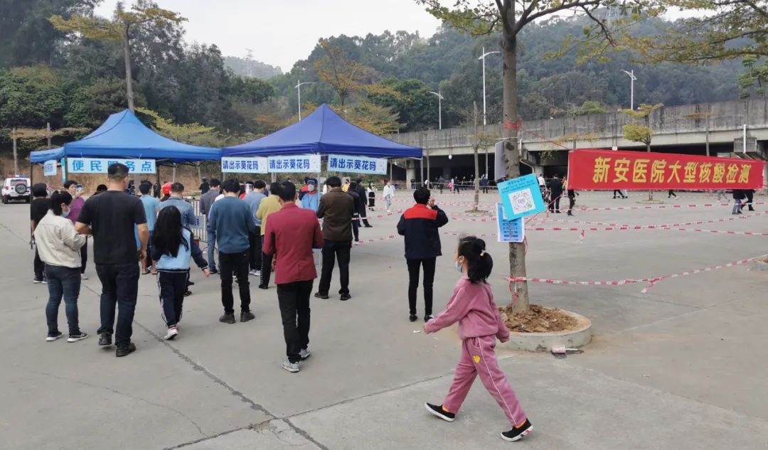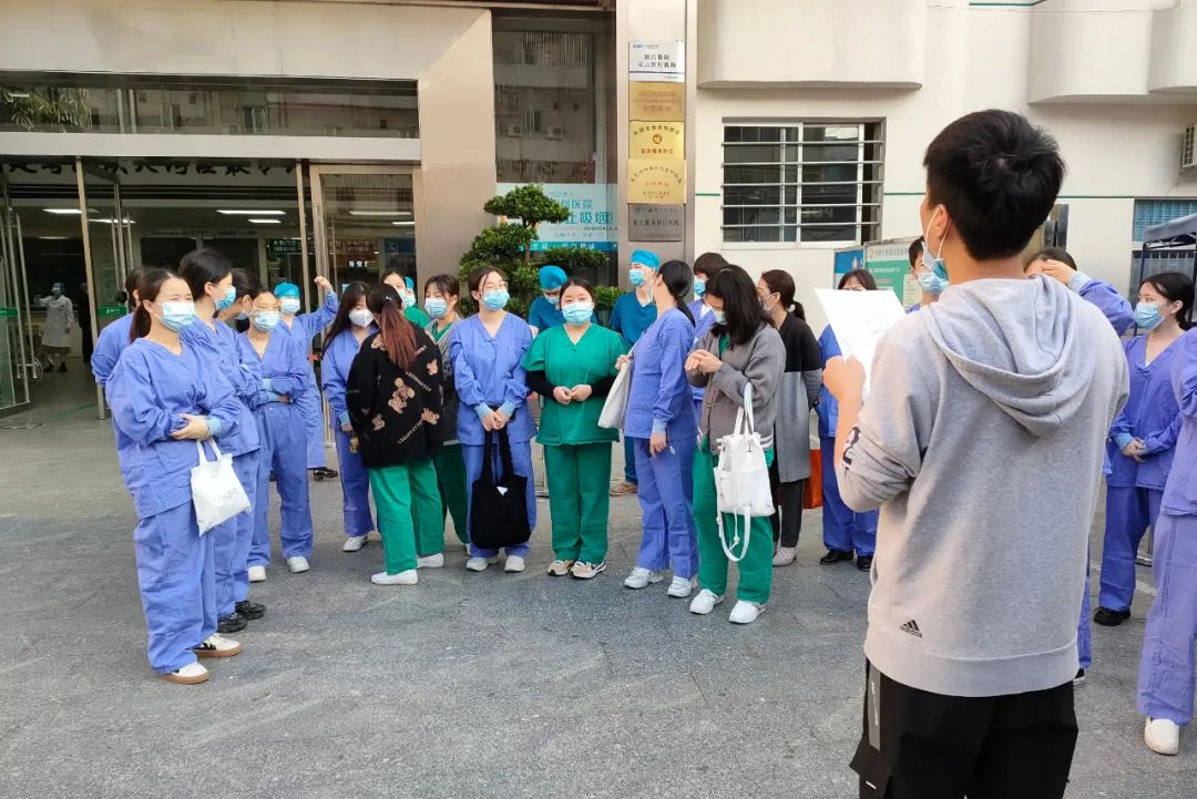 由新安医院医务部牵头,护理部协助抽调各护理单元骨干共50多名医护人员支援上沙社区核酸检测工作。早上7点出发前往指定核酸检测点。