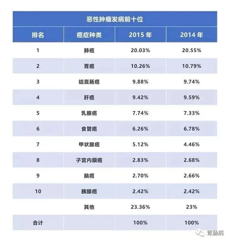 十大肿瘤的新增病例比例