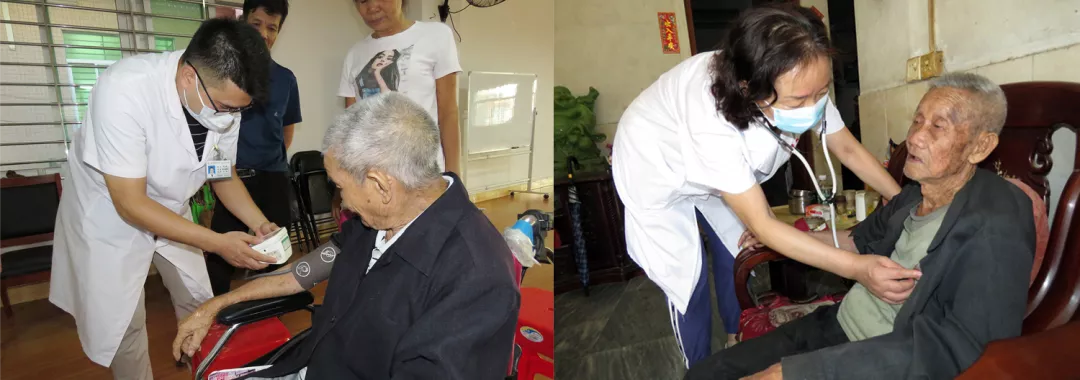 “阿婆,来,给您测个血压”、“阿婆,血压正常,很赞哦”,这是新安医院心内科黄素贞主任和内科罗琪杰医生为社区老人测量血压时的暖心嘱托,百岁阿婆精神抖擞地举起双手点赞进行回应。