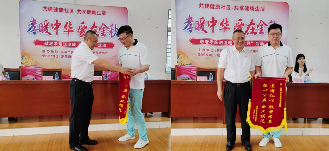 与此同时,新安社区为表达对新安医院爱心协作的感谢,新安社区党委麦子良副书记亲自将一面写着“医者仁心,敬老孝心;热心公益,企业模范”的锦旗和纪念品赠予新安医院,感谢新安医院对社区长者们的关心与爱护。
